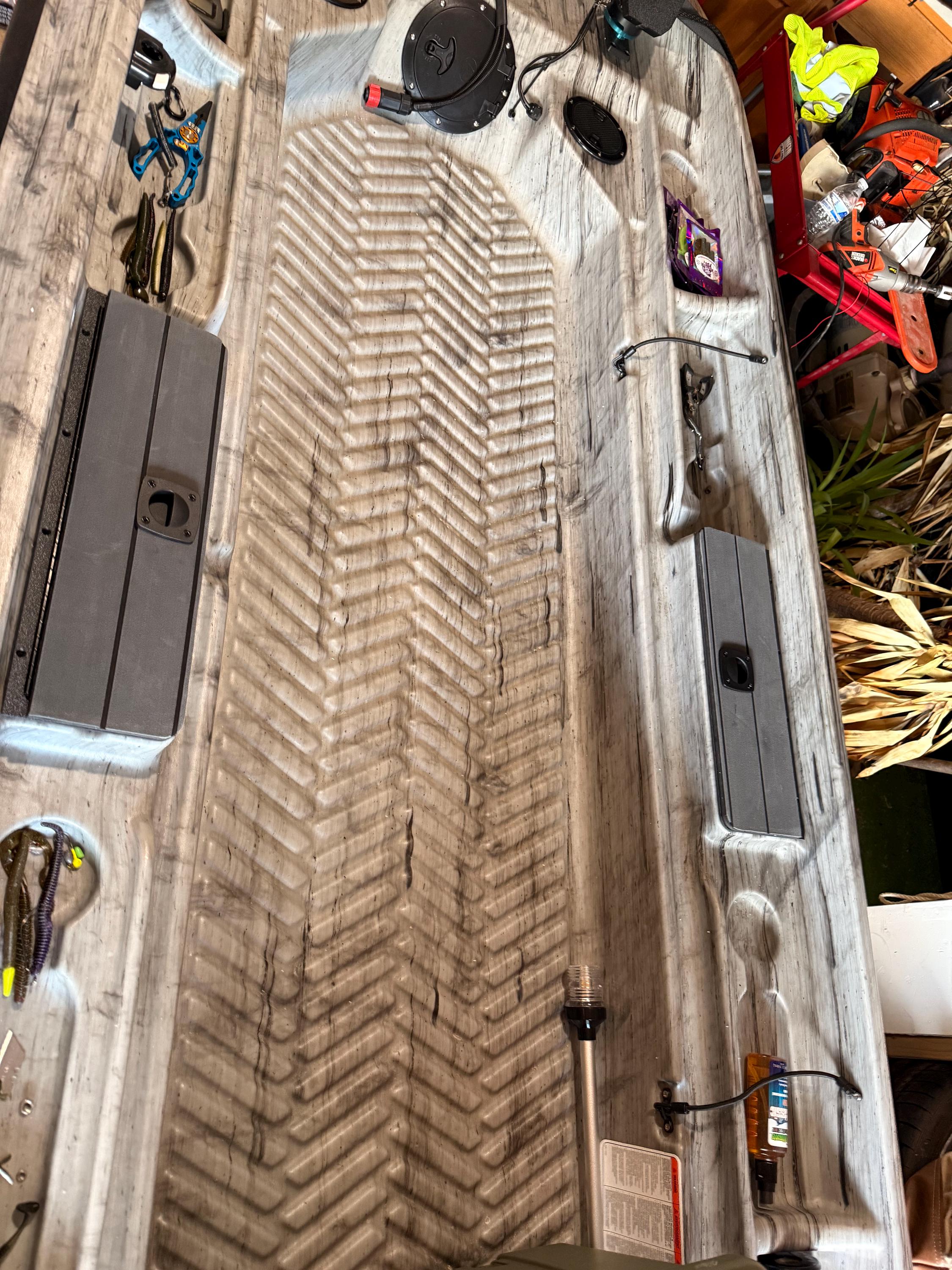 1 pair of 3700 tackle storage with magnetic lids or hinged, magnetic lids for the pond prowler 10 new body style. Each box holds two 3700 size trays with room to spare! These include stainless steel hardware, 3M TALC Marine Adhesive Sealant 5200, and a cut out template. They can come in black textured plastic lid or boat decked.